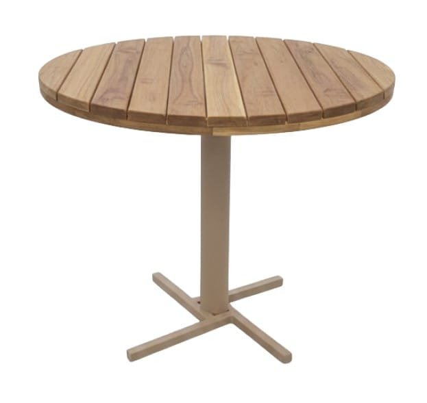 Mesa Doha com estrutura em alumínio e tampo em madeira Teca, unindo resistência, durabilidade e um design elegante que valoriza o ambiente.