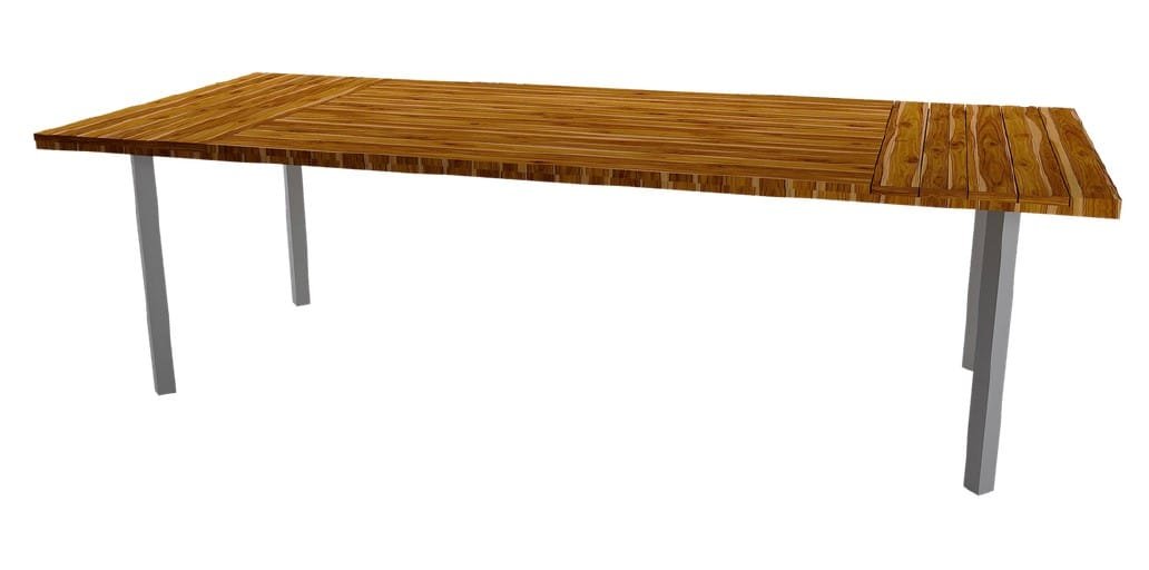 Mesa Faraó com estrutura em alumínio e tampo em madeira Teca, unindo resistência, durabilidade e um design elegante que valoriza o ambiente.