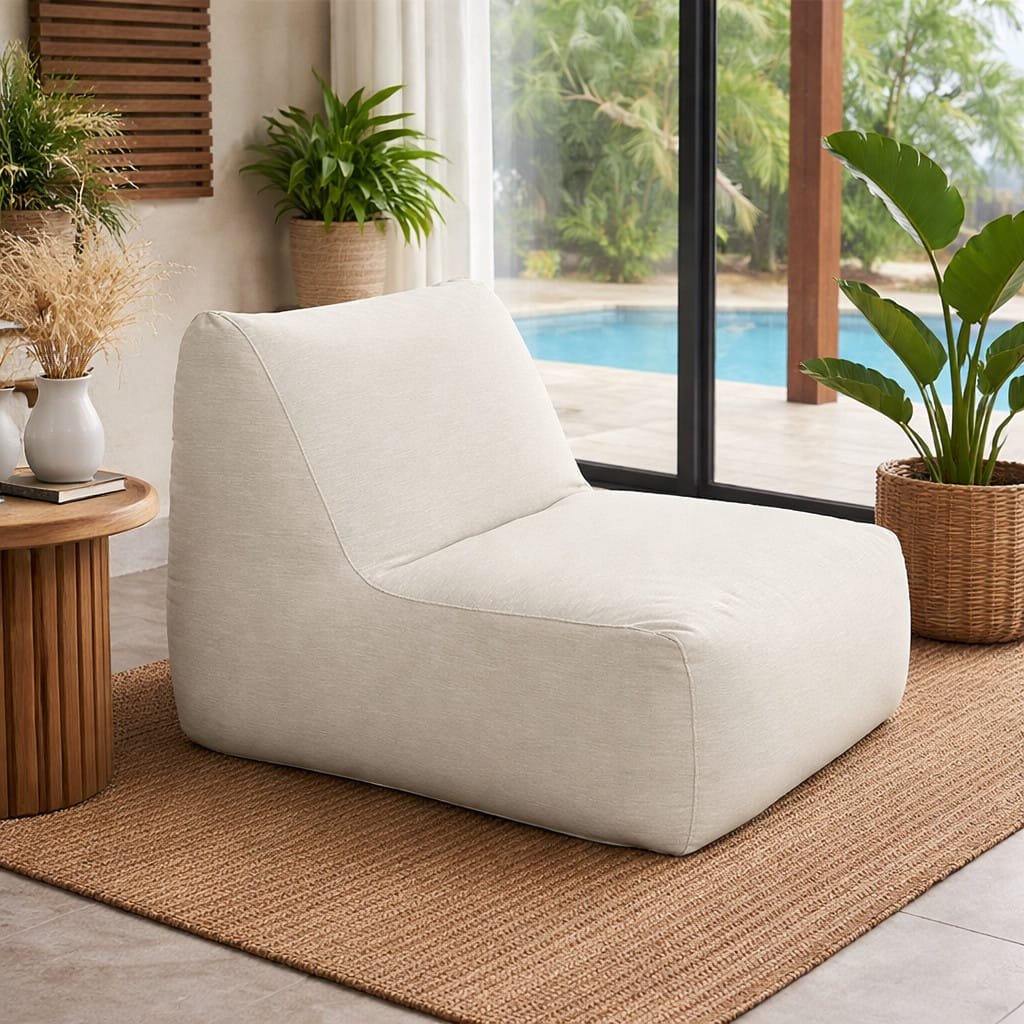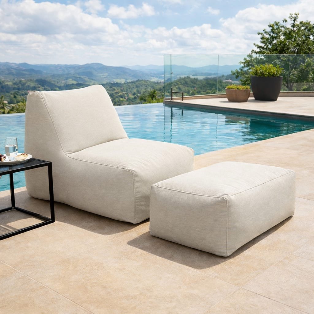 Ambos com enchimento SUPER SOFT, composto por flocos de espuma e esferas de EPS de alta densidade, o apoio garante maciez e sustentação equilibrada. Seu uso é indicado tanto para ambientes internos quanto externos, com forro impermeável em poliamida e tela inferior que permite o escoamento de água — ideal para quem busca funcionalidade e resistência em um único produto.