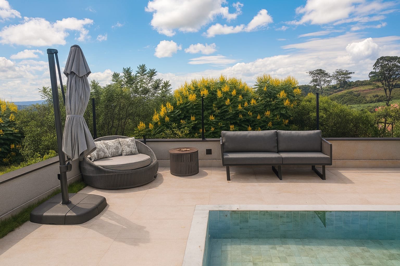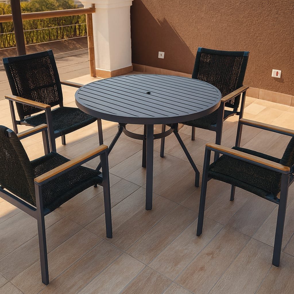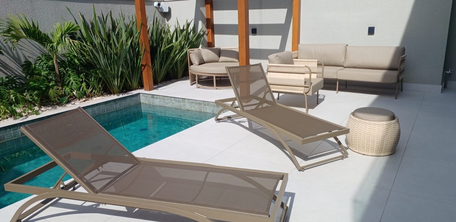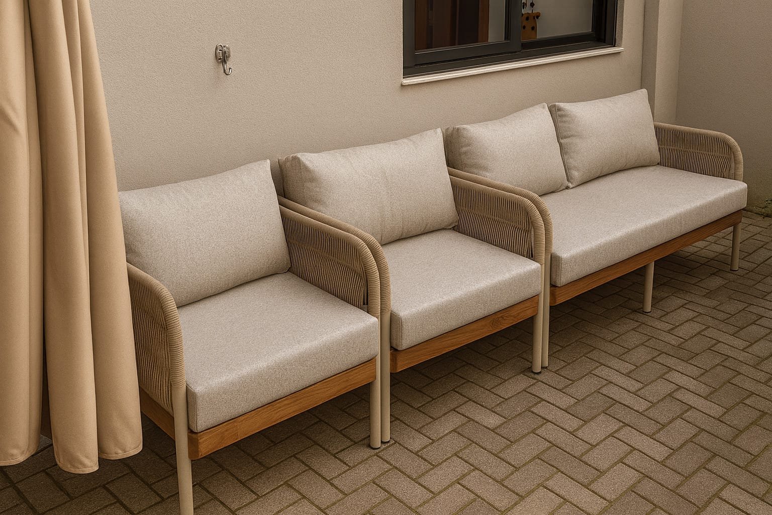 O Sofá Berlim é construído com uma estrutura robusta e resistente de alumínio, assegurando estabilidade e durabilidade. Ele é revestido com corda náutica ou tricô náutico, ambos materiais conhecidos pela sua resistência às intempéries. Seu estofado é feito de tecido Acquablock da Karsten, proporcionando conforto e durabilidade adicionais.